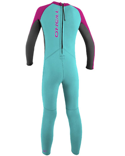 O’Neill Toddler Girls Reactor II Full Wetsuit 2mm 2024 for Toddlers or kids is perfect for the cold springtime water at the beach or in a lake. High visibility colors, SPF50 sun protection, easy in or out with waterproof back zip, ultra-stretch warm soft neoprene, flatlock stitched seams for durability. Oneill color for girl is light aqua, graphite, and berry. Kids sizes from age 1 thru age 6.